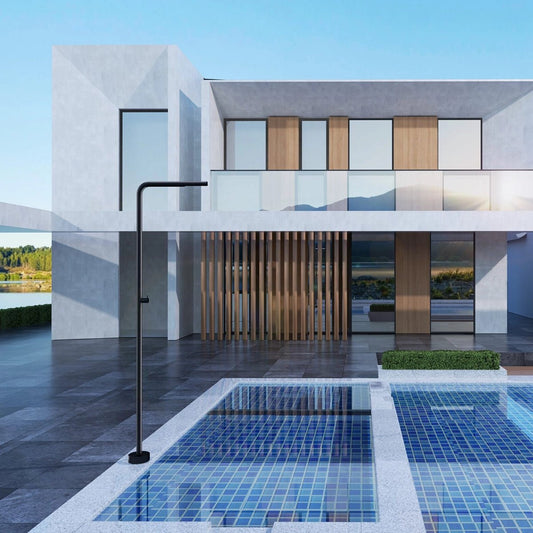 - Chuveiros para piscinas exteriores: feitos para resistir à água clorada.