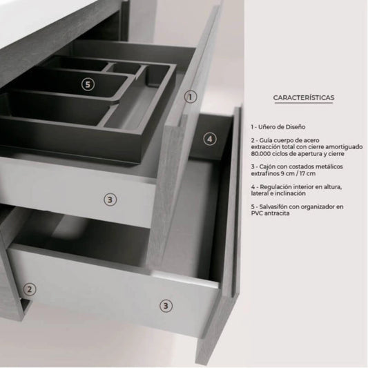 Hoje em dia, o design moderno é fundamental em qualquer dedução decorativa e a casa de banho não é exceção. Os móveis de casa de banho modernos com lavatório e espelho oferecem um design minimalista que aproveita ao máximo o espaço disponível. As linhas rectas e os acabamentos elegantes combinam-se para criar uma atmosfera relaxante. Além disso, optar por um móvel de 90, 100 ou 120 cm pode ser a solução ideal tanto para casas de banho grandes como pequenas, oferecendo o espaço necessário para guardar os seus produtos de higiene pessoal.
