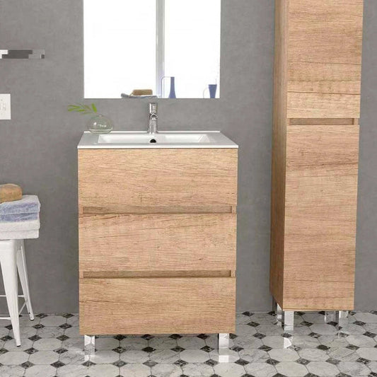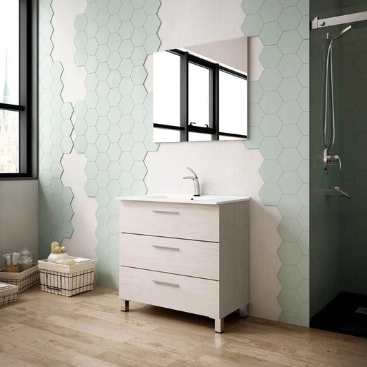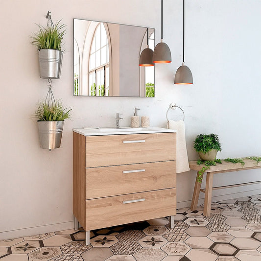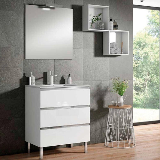 Os móveis de casa de banho com pés oferecem uma estética única, fundindo o clássico com o moderno e acrescentando um toque de sofisticação que transformará a sua casa de banho. O seu design elevado permite uma limpeza mais fácil e evita o contacto direto com o chão, aumentando a sua durabilidade e resistência à humidade. Se procura alternativas a estes, explore os móveis de casa de banho de 60, 70 e 80 cm; são opções versáteis que se adaptam a qualquer espaço.