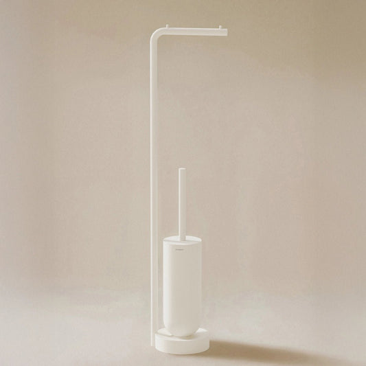Para além do suporte para papel higiénico, uma casa de banho bem equipada também tem outros elementos essenciais, como cestos de papel hig iénico adequados que complementam o espaço e mantêm uma harmonia visual e prática.