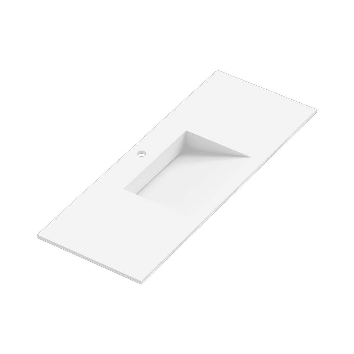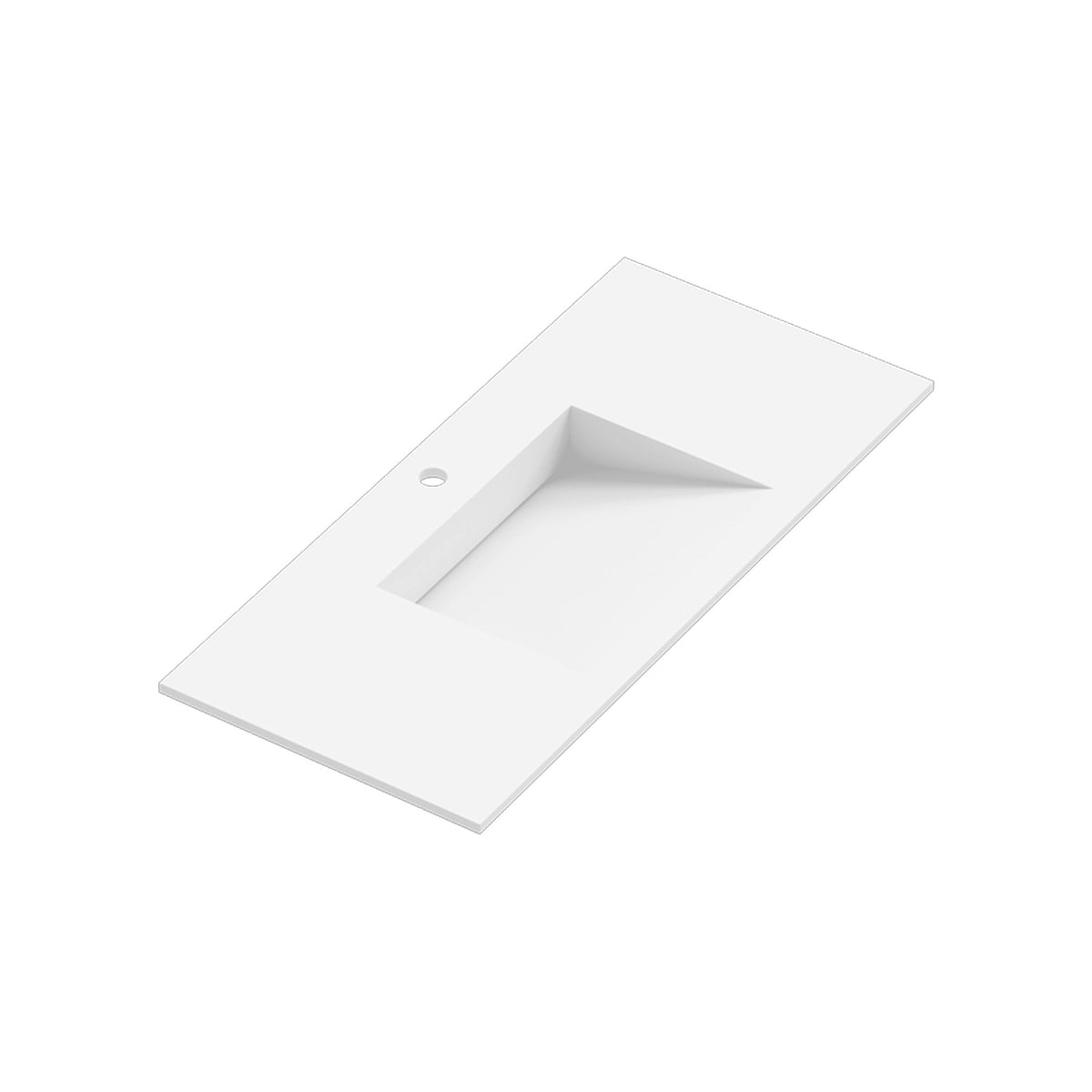 A Lavatório de superfície sólida Iris, em superfície sólida, é a escolha ideal para casas de banho modernas que procuram elegância e funcionalidade. Fabricada numa superfície sólida de alta qualidade, apresenta um acabamento branco mate sofisticado, durável e de fácil manutenção. O seu design, sem saia ou ladrão e com furo para torneira, proporciona uma estética limpa e contemporânea, perfeita como cuba de apoio.
